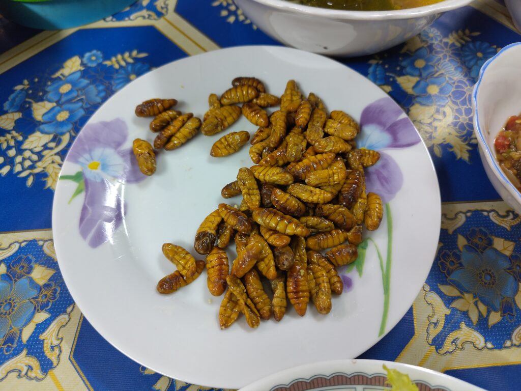 Et comme si ça ne suffisait pas, je me fais accrocher par deux jeunes femmes qui me reconnaissent, dont Thep ou Thip, je ne sais pas trop, qui a travaillé autrefois dans le projet du SFE de Kapeu (clôturé en 2019 sous la direction de Dawn Lewis[1]) et travaille maintenant avec Terra Clear. Toute contente, elle prend une photo pour l’envoyer à «Mè-Dawn» (= «maman Dawn).